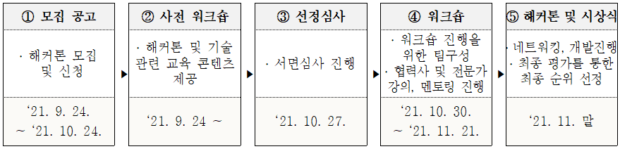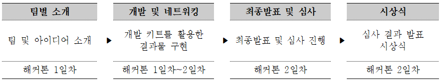 □ 목 적 : 단순 1박 2일 과정의 해커톤에서 벗어나 협력기관과 약 1개월간의 워크숍을통해 결과물의 완성도를 높이고자 함