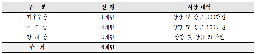 □ 모집규모 : 20개팀 내외(팀당 3명 내외, 약 60명 내외)