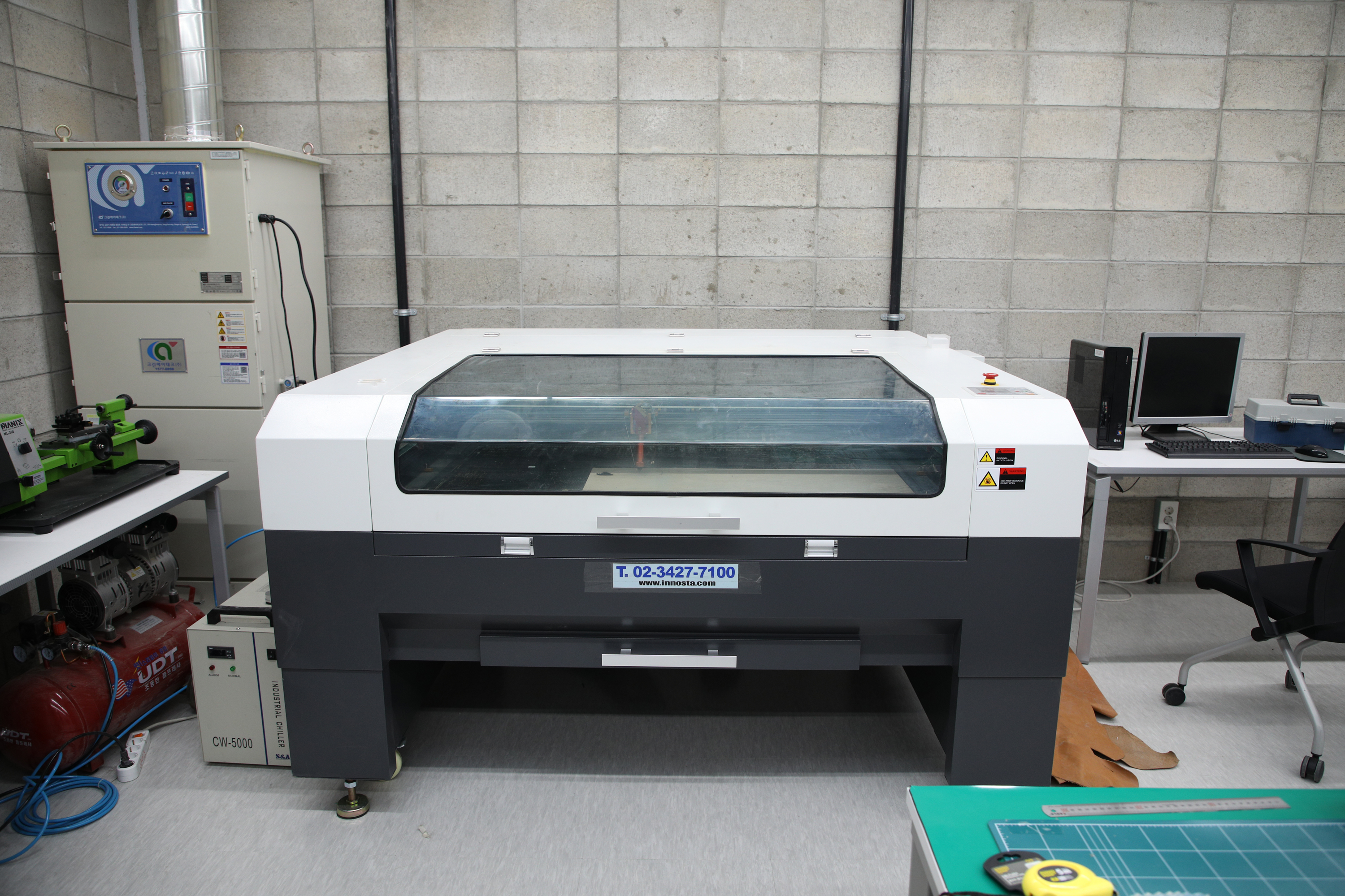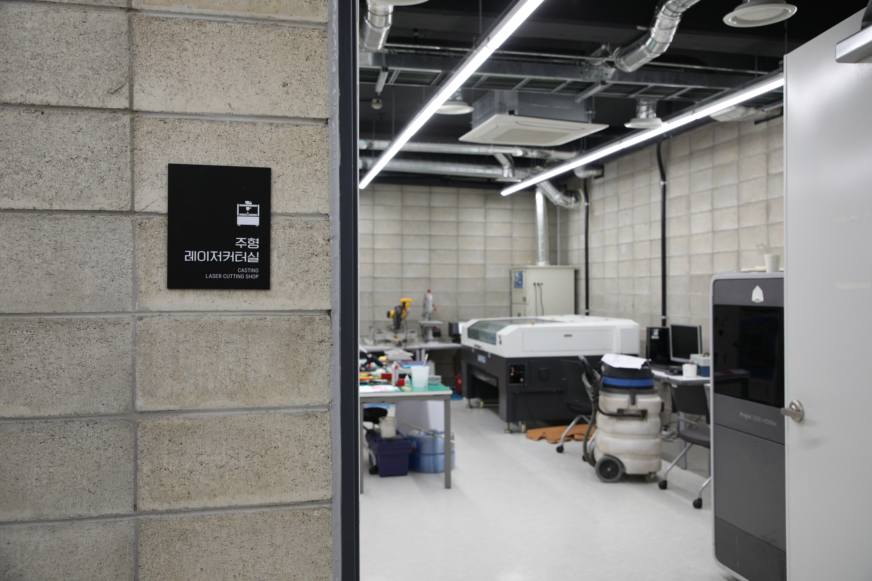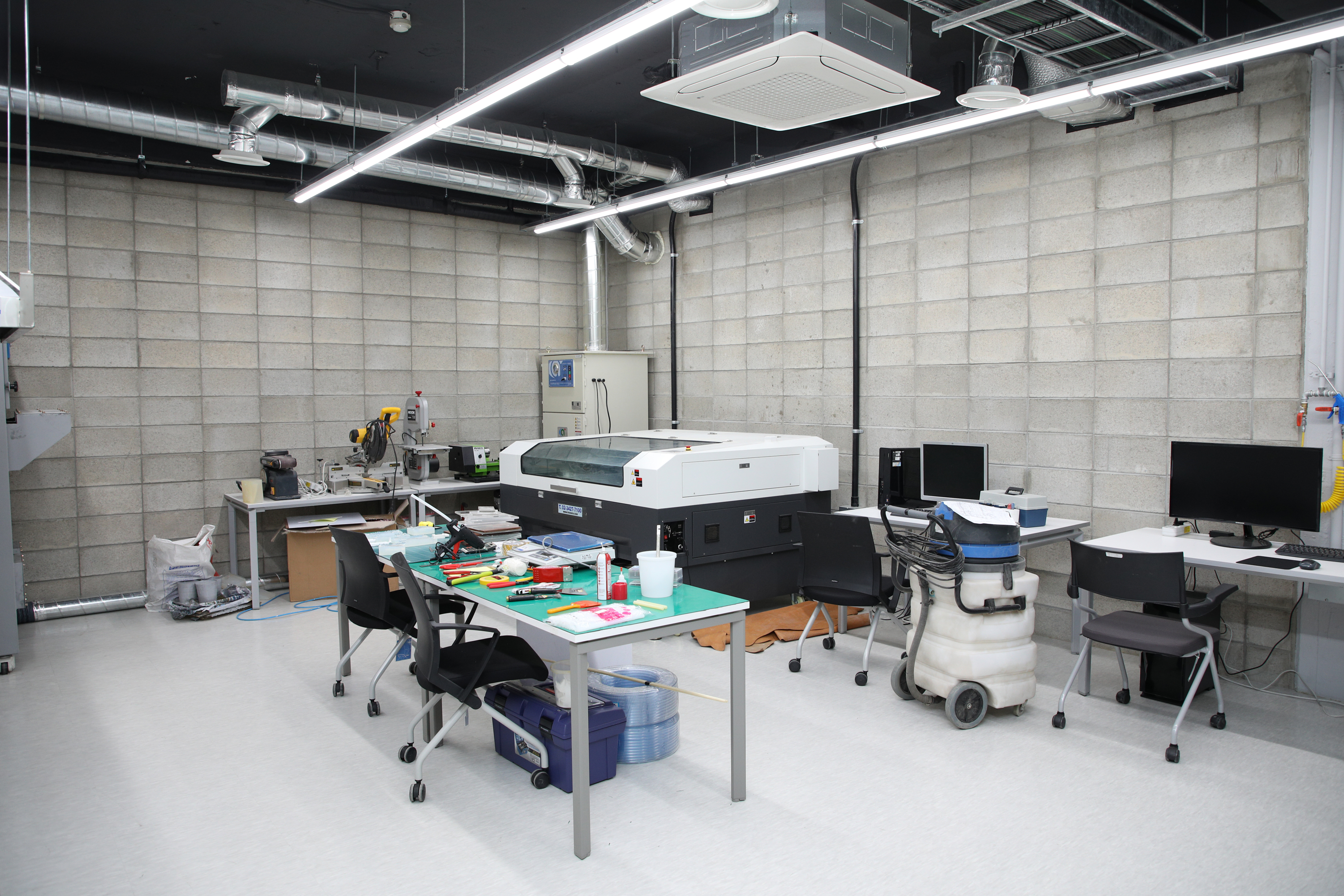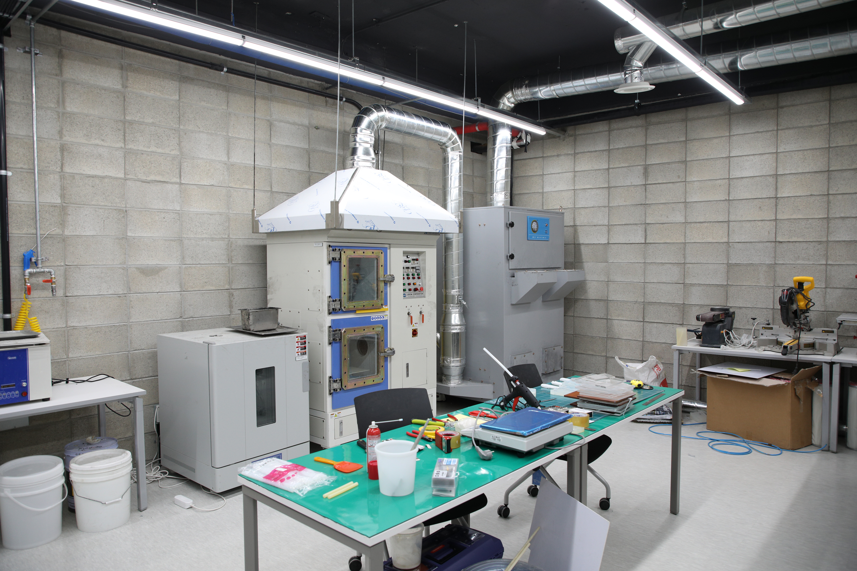 주형기와 레이저커터를 설치한 곳입니다. 소량 금형을 제작하여 복제하는 시설입니다.
